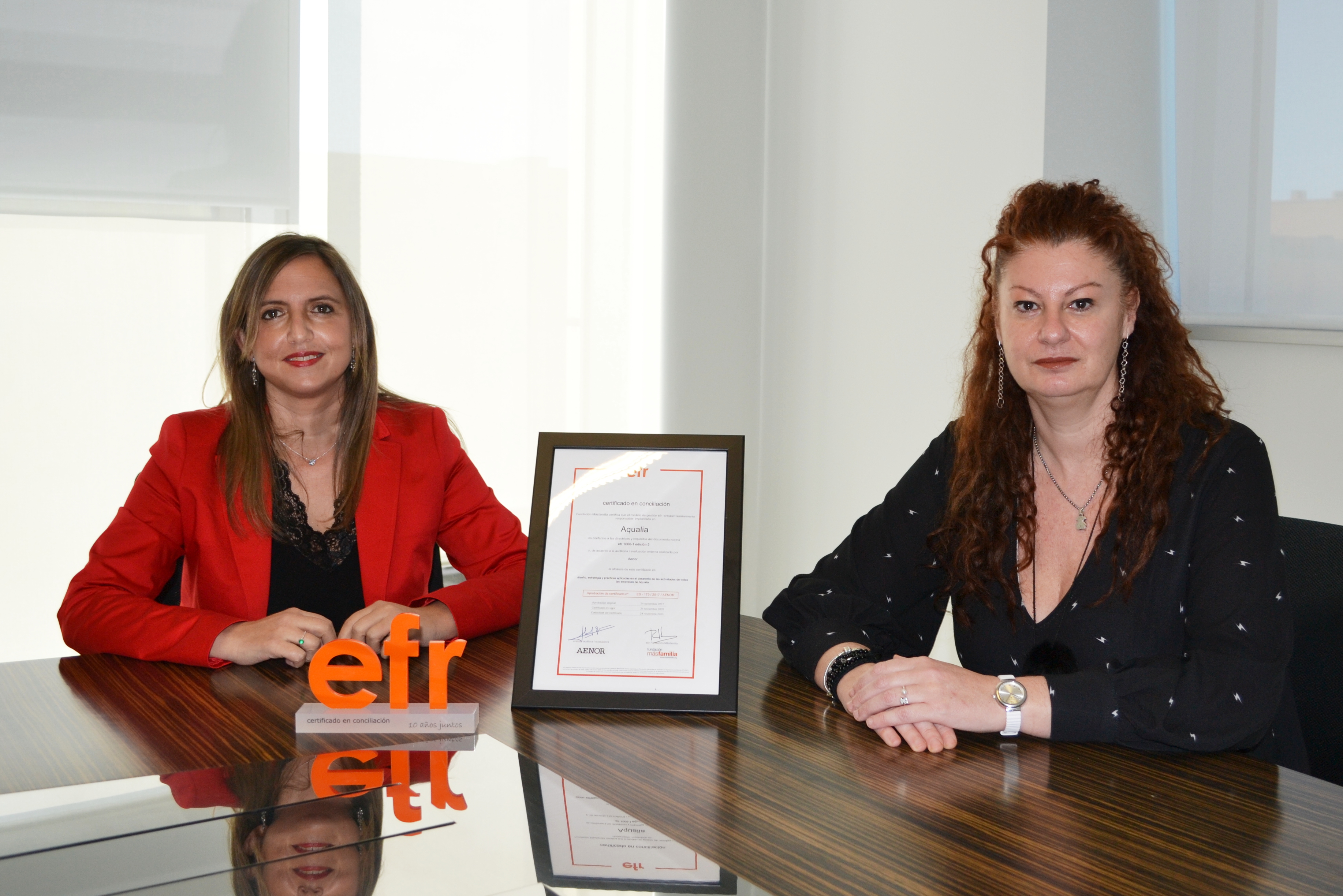 Desde el punto de vista de la conciliación, se están impulsando medidas que faciliten el bienestar y equilibrio de la vida personal y profesional de todos los que forman la organización, medidas que han llevado a Aqualia a obtener el sello Empresa Familiarmente Responsable (efr), otorgado por la Fundación Másfamila reconociendo su trayectoria en esta materia.